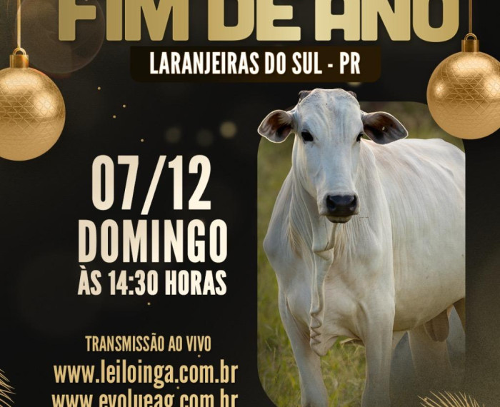 DEZ 07 Ver mais detalhes do evento e dos lotes disponíveis 07 de Dezembro às 14:30H Leilão Especial Fim de Ano - Gado de Corte Laranjeiras do Sul - PR RECINTO DE LEILÕES