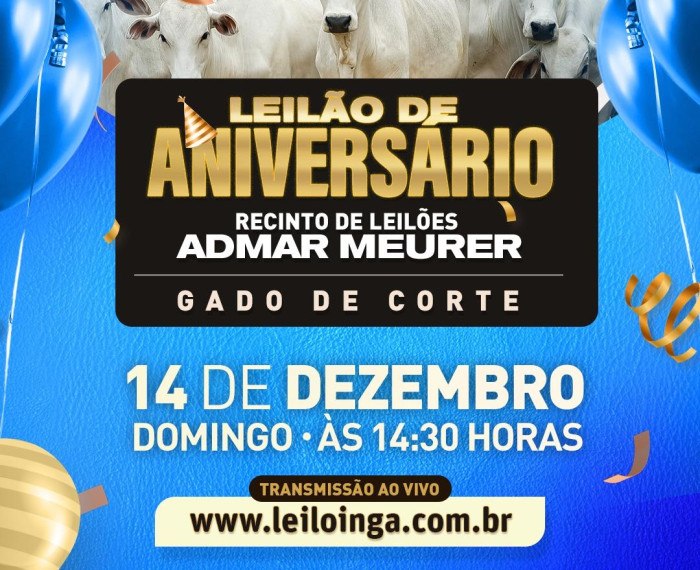 DEZ 14 Ver mais detalhes do evento e dos lotes disponíveis 14 de Dezembro às 14:30H LEILÃO ESPECIAL FIM DE ANO - GADO DE CORTE - MARQUINHO-PR Marquinho - PR RECINTO ADMAR MEURER
